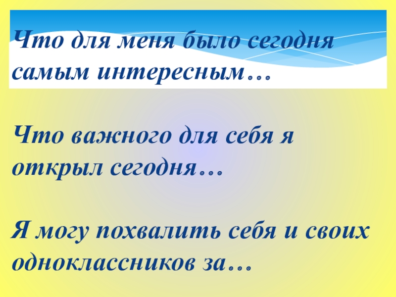 Что для меня было сегодня самым интересным…Что важного для себя я открыл сегодня…Я могу похвалить себя и