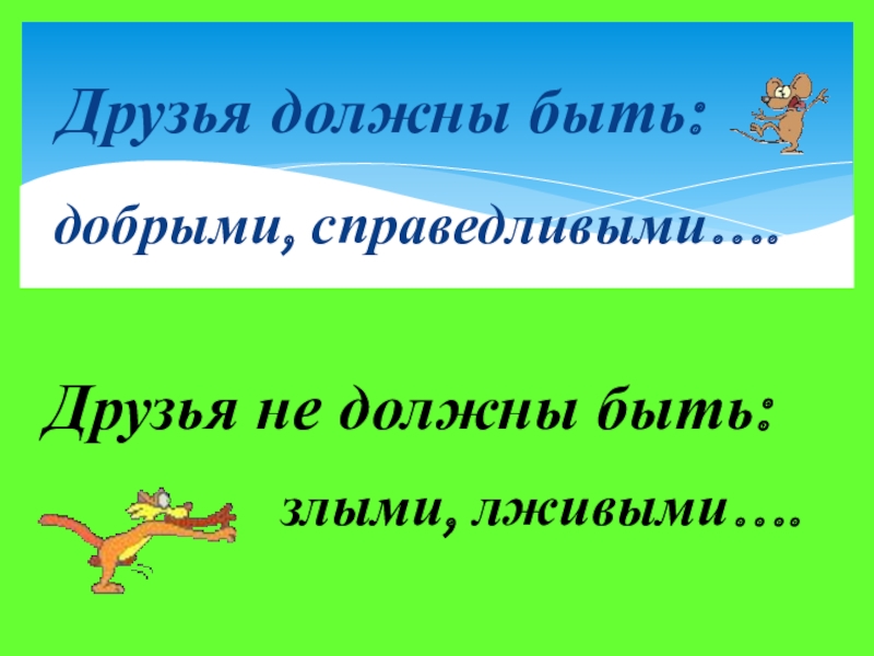 Друзья должны быть:добрыми, справедливыми….Друзья не должны быть:злыми, лживыми….