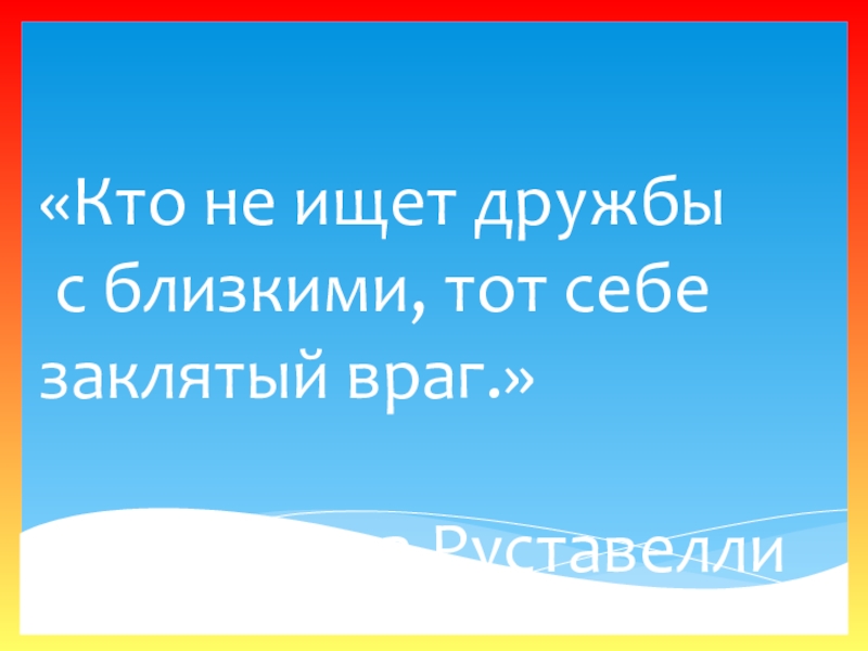 Слайд 4«Кто не ищет дружбы с близкими, тот себе заклятый враг.»