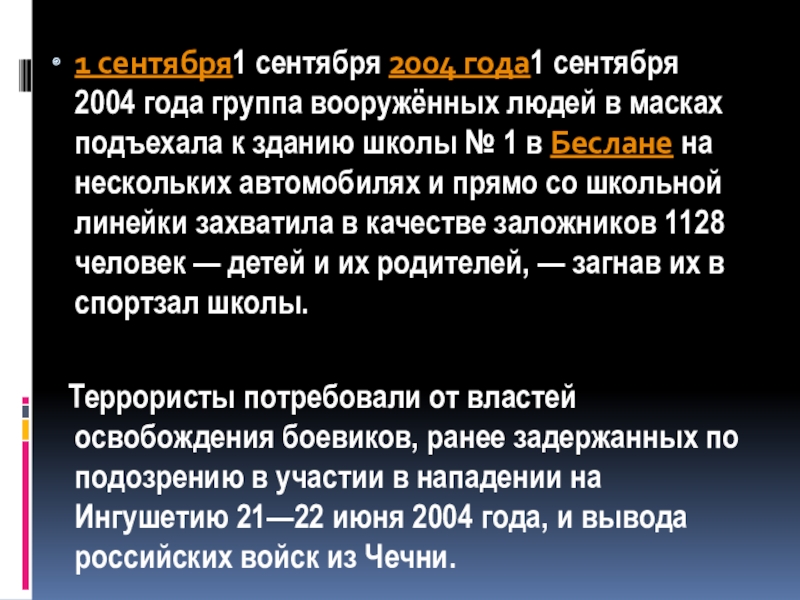 Слайд 41 сентября1 сентября 2004 года1 сентября 2004 года группа вооружённых людей