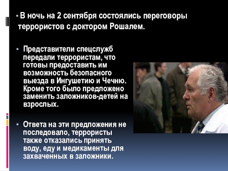 В ночь на 2 сентября состоялись переговоры террористов с доктором Рошалем.