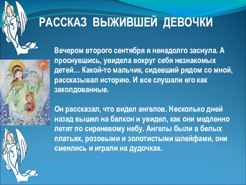 Слайд 11РАССКАЗ ВЫЖИВШЕЙ ДЕВОЧКИ
