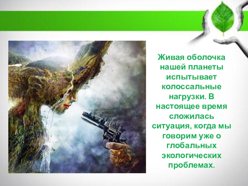 Слайд 3Живая оболочка нашей планеты испытывает колоссальные нагрузки. В настоящее время сложилась