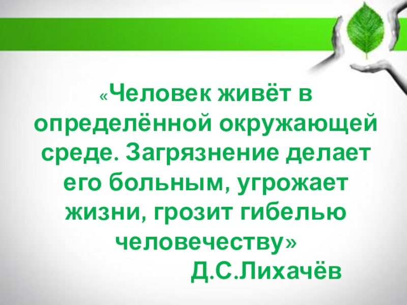 «Человек живёт в определённой окружающей среде. Загрязнение делает его больным, угрожает жизни, грозит гибелью человечеству» Д.С.Лихачёв