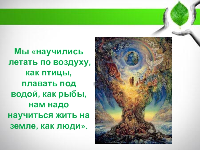 Мы «научились летать по воздуху, как птицы, плавать под водой, как рыбы, нам надо научиться жить на