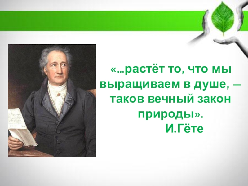 «…растёт то, что мы выращиваем в душе, — таков вечный закон природы».     И.Гёте