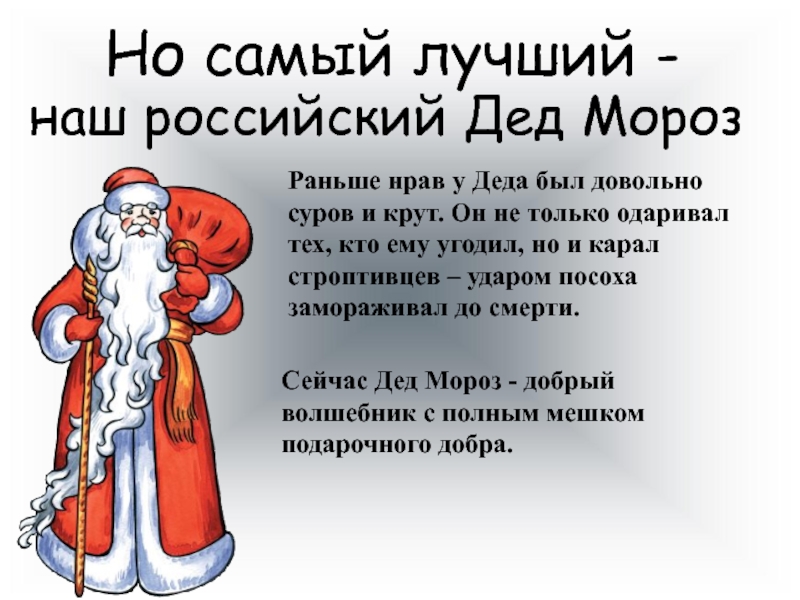 Сейчас Дед Мороз - добрый волшебник с полным мешком подарочного добра.