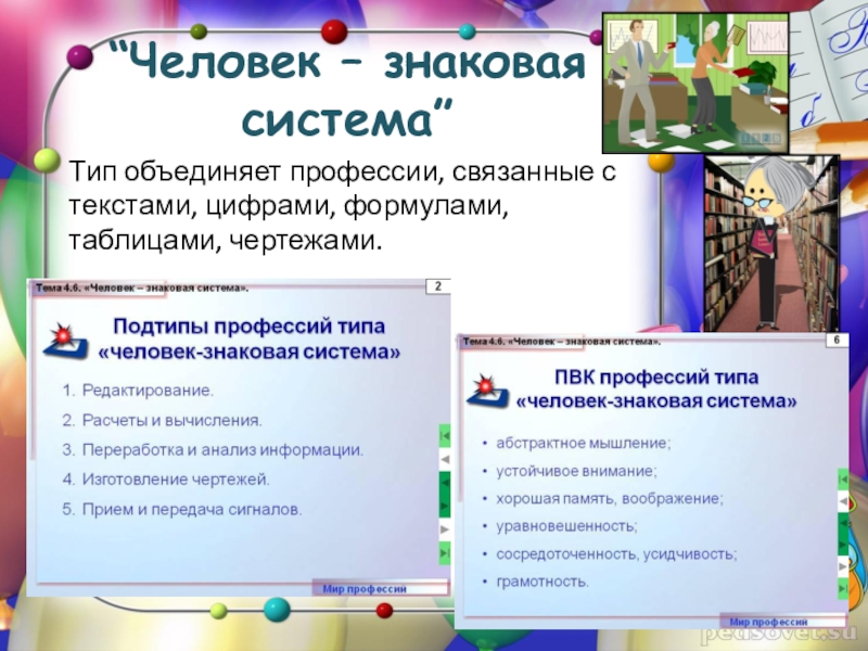 Подтипы профессий типа