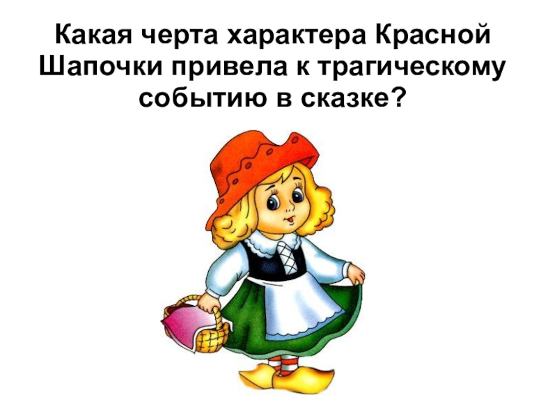 Слайд 5 Какая черта характера Красной Шапочки привела к трагическому событию в сказке?