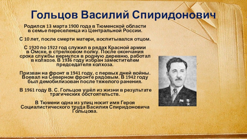 Слайд 3Гольцов Василий Спиридонович