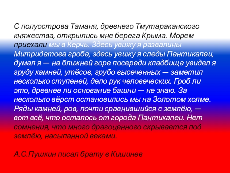Слайд 19С полуострова Таманя, древнего Тмутараканского княжества, открылись мне берега Крыма. Морем