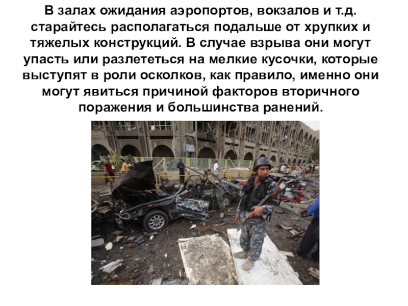 Слайд 10В залах ожидания аэропортов, вокзалов и т.д. старайтесь располагаться подальше от