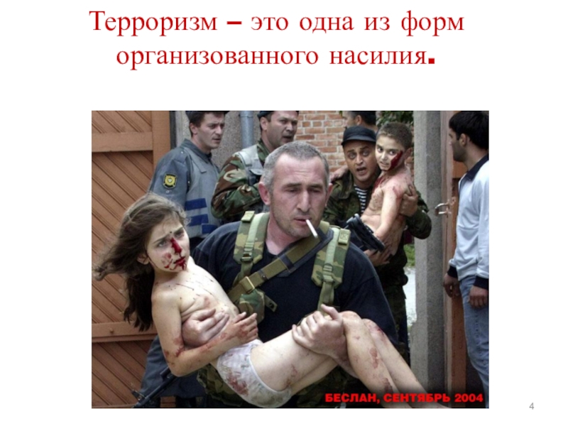 Слайд 4Терроризм – это одна из форм организованного насилия.