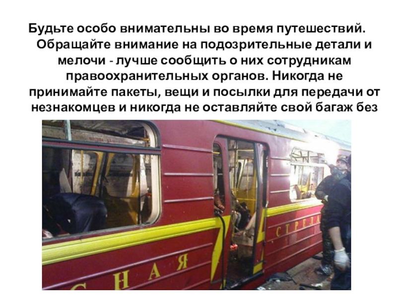 и мелочи - лучше сообщить о них сотрудникам правоохранительных органов. Никогда не принимайте пакеты, вещи и посылки для передачи от незнакомцев и никогда не оставляйте свой багаж без присмотра.