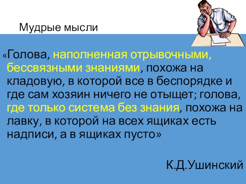 «Голова, наполненная отрывочными, бессвязными знаниями, похожа на кладовую, в которой