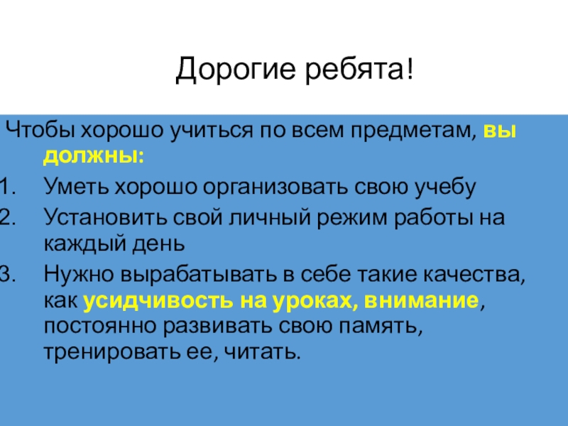 Чтобы хорошо учиться по всем предметам, вы должны: