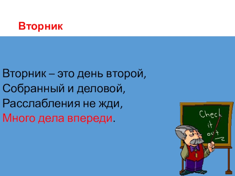 Слайд 3Вторник