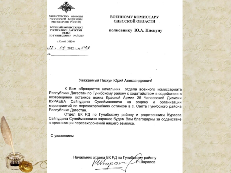 Презентация, доклад на тему Классный час на тему В память Кураева Сайпудина 4 класс