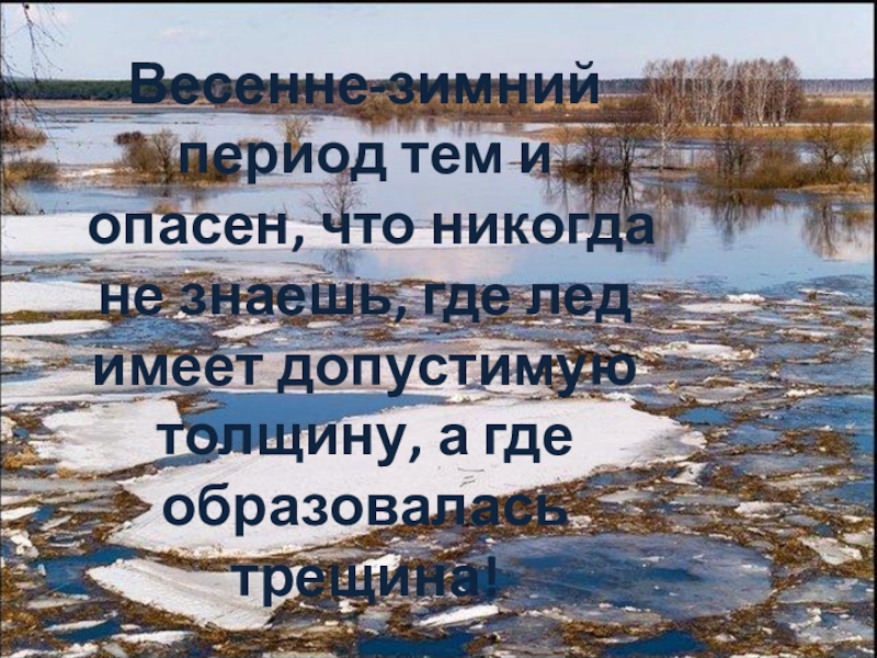 Слайд 9Весенне-зимний период тем и опасен, что никогда не знаешь, где лед