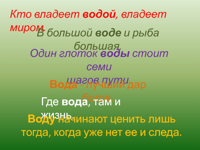 Воду начинают ценить лишь тогда, когда уже нет ее и следа.
