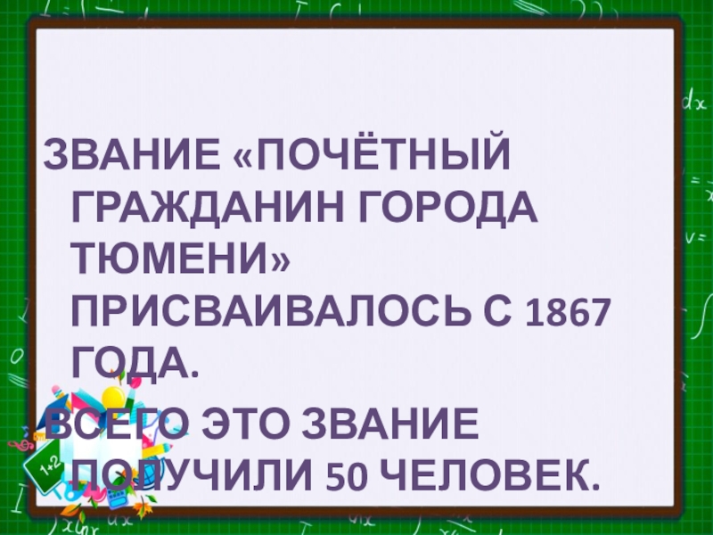Слайд 9Звание «Почётный гражданин города Тюмени» присваивалось с 1867 года.