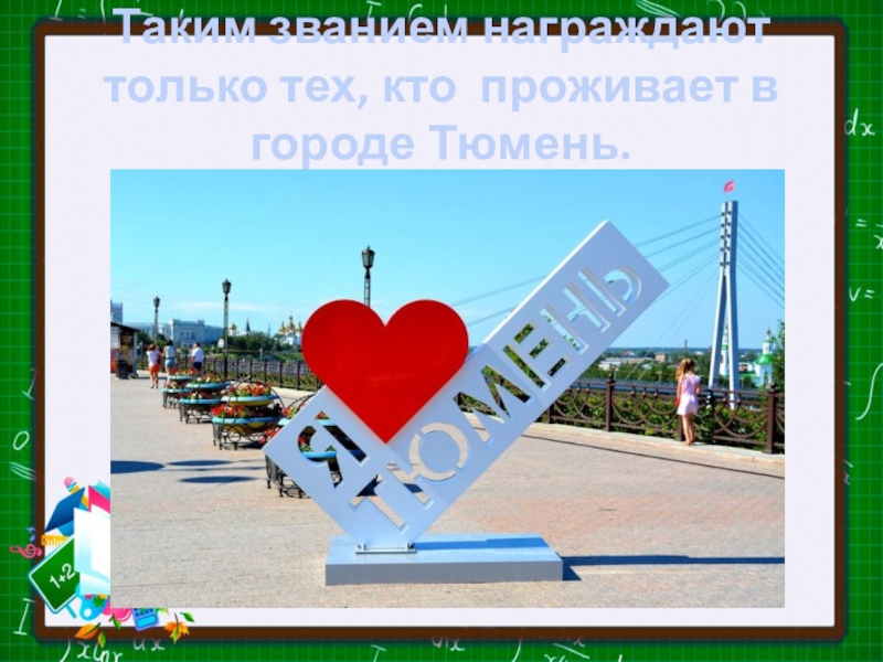 Слайд 3Таким званием награждают только тех, кто проживает в городе Тюмень.