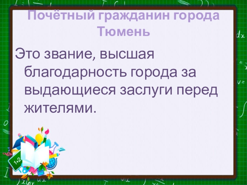 Презентация, доклад на тему Классный час. Почетный гражданин города Тюмени.