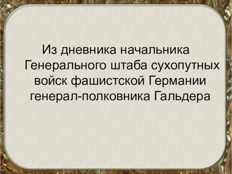 Слайд 8Из дневника начальника Генерального штаба сухопутных войск фашистской Германии генерал-полковника Гальдера