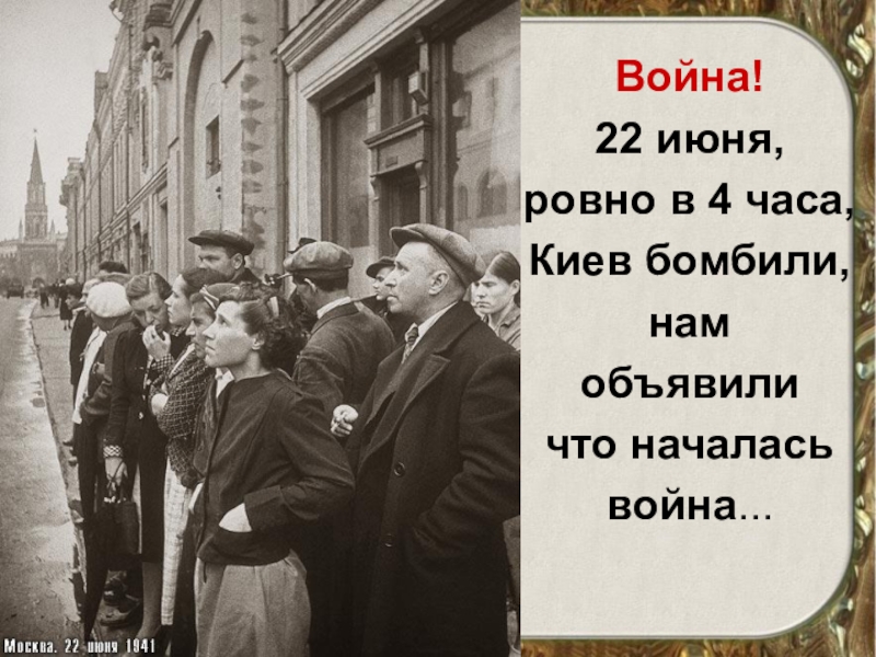 Война!22 июня,ровно в 4 часа,Киев бомбили,намобъявиличто началась война...