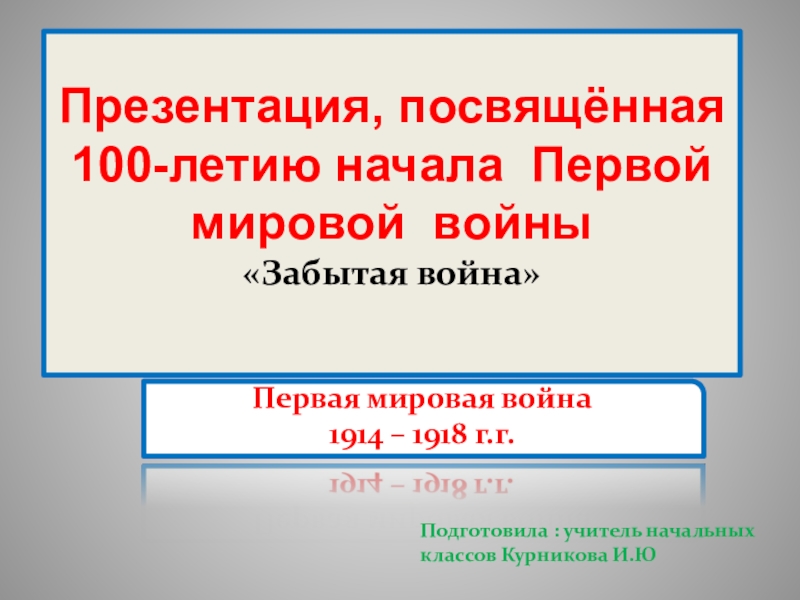 Подготовила : учитель начальных классов Курникова И.Ю