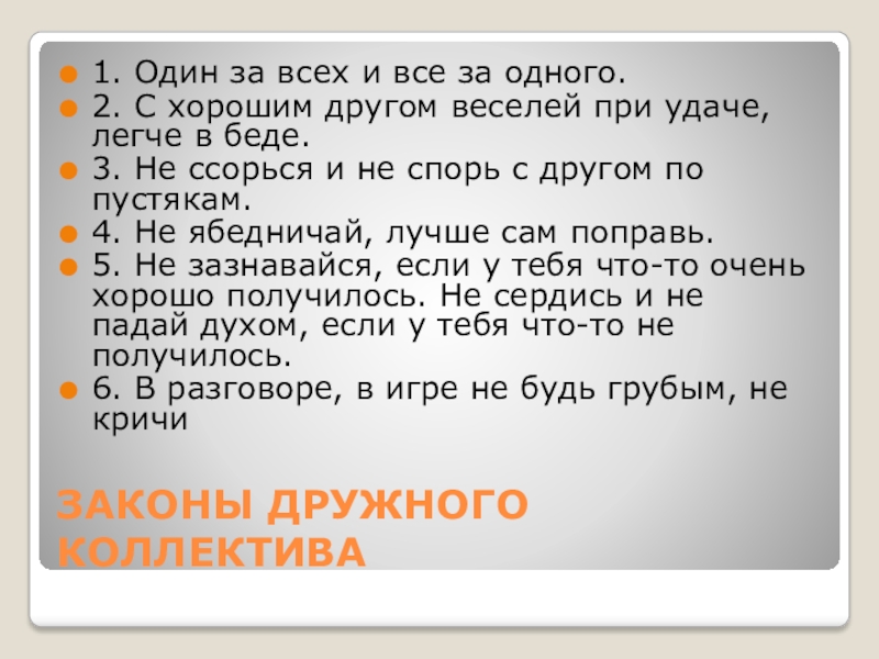 Слайд 8ЗАКОНЫ ДРУЖНОГО КОЛЛЕКТИВА
