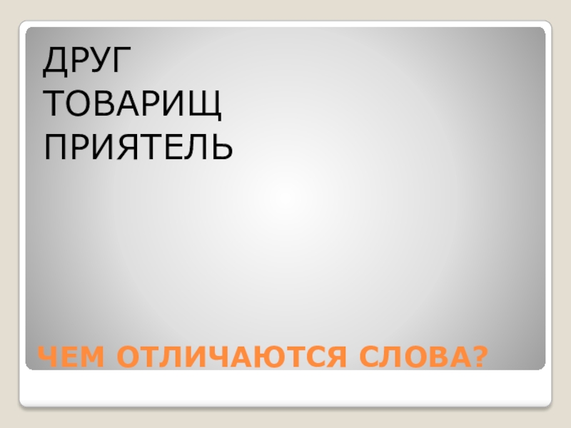 ЧЕМ ОТЛИЧАЮТСЯ СЛОВА?ДРУГТОВАРИЩПРИЯТЕЛЬ