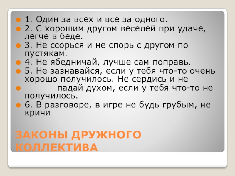Слайд 4ЗАКОНЫ ДРУЖНОГО КОЛЛЕКТИВА