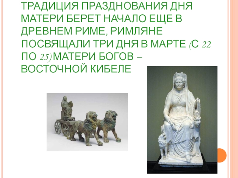 ДРЕВНЕМ РИМЕ, РИМЛЯНЕ ПОСВЯЩАЛИ ТРИ ДНЯ В МАРТЕ (С 22 ПО 25) МАТЕРИ БОГОВ – ВОСТОЧНОЙ КИБЕЛЕ