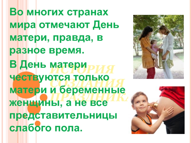 В День матери чествуются только матери и беременные женщины, а не все представительницы слабого пола.