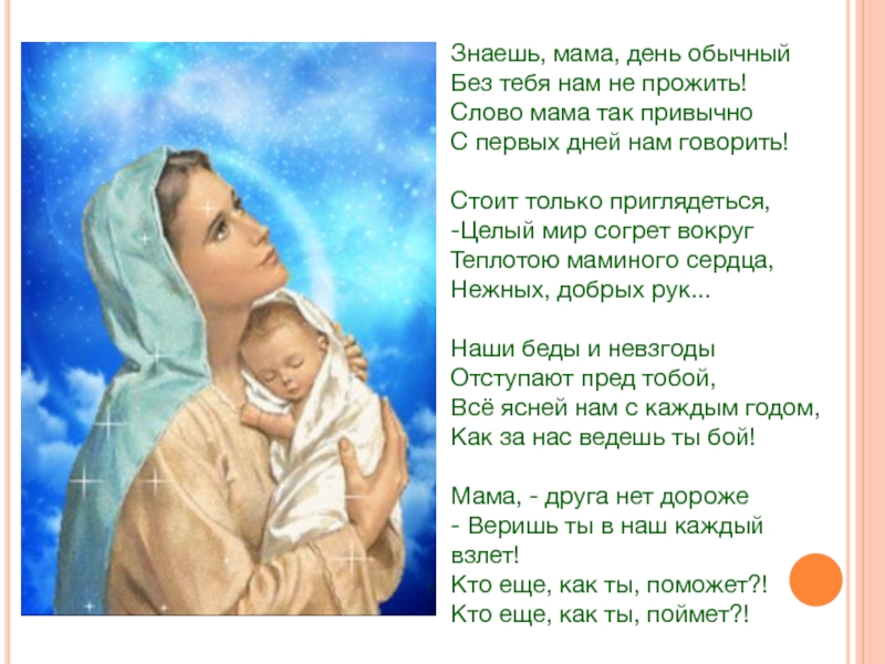 Слайд 21МАМА, МАМОЧКА... СКОЛЬКО ТЕПЛА ТАИТ ЭТО МАГИЧЕСКОЕ СЛОВО, КОТОРЫМ НАЗЫВАЮТ САМОГО
