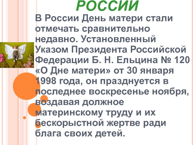 Слайд 13ДЕНЬ МАТЕРИ В РОССИИ
