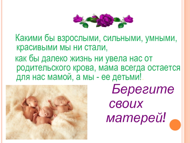 Слайд 27 Какими бы взрослыми, сильными, умными, красивыми мы ни стали,