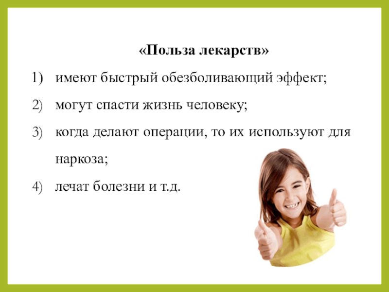 Слайд 9«Польза лекарств»
