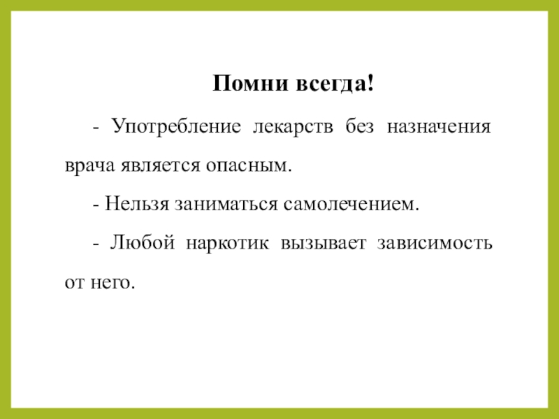 - Употребление лекарств без назначения врача является опасным.