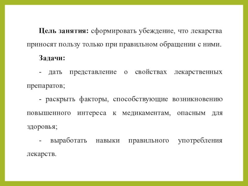 Цель занятия: сформировать убеждение, что лекарства приносят