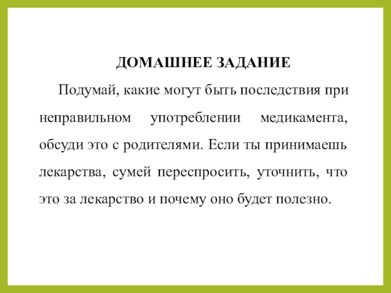 Подумай, какие могут быть последствия при неправильном употреблении медикамента, обсуди