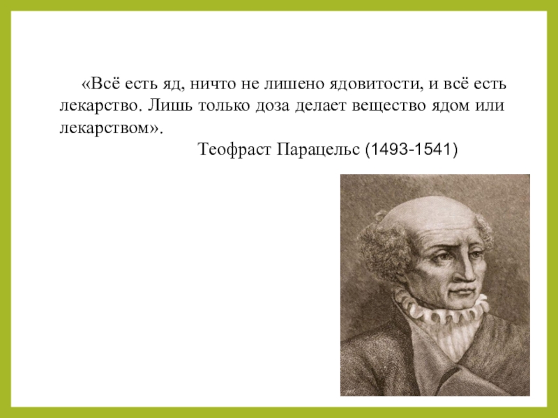 Слайд 3«Всё есть яд, ничто не лишено ядовитости, и всё есть лекарство.