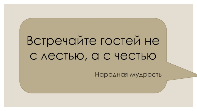 Встречайте гостей не с лестью, а с честьюНародная мудрость