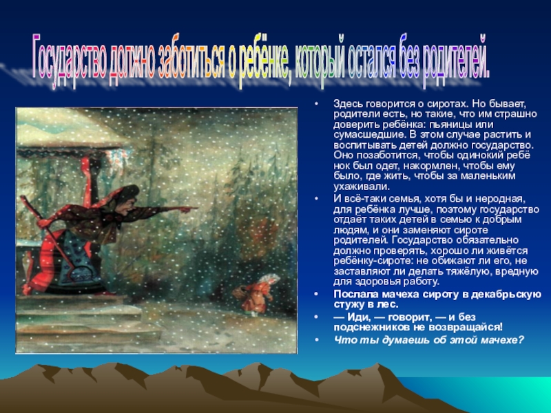 Государство должно заботиться о ребёнке, который остался без родителей.