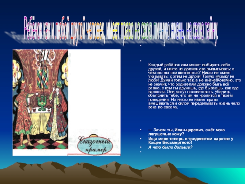 Ребёнок как и любой другой человек, имеет право на свою личную жизнь, на свою тайну.