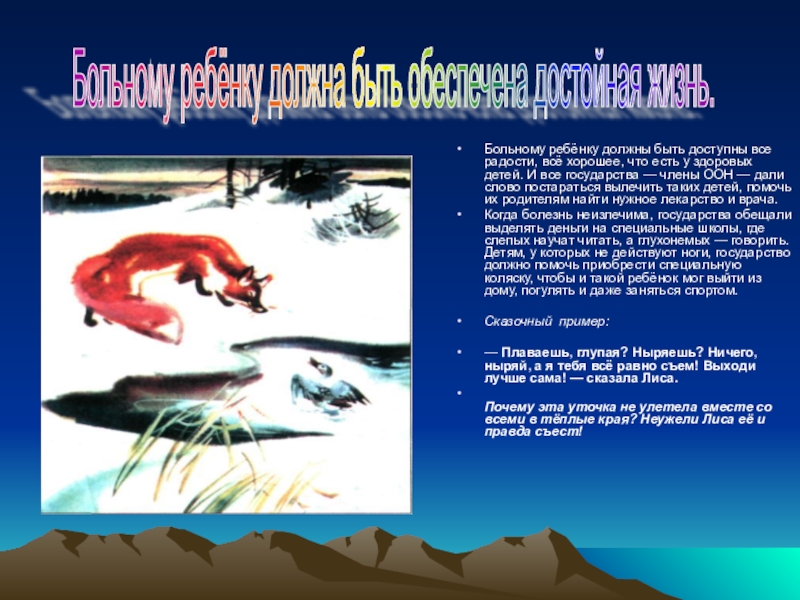 Больному ребёнку должна быть обеспечена достойная жизнь.
