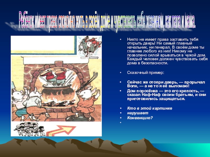Ребёнок имеет право спокойно жить в своём доме и чувствовать себя хозяином, как папа и мама.