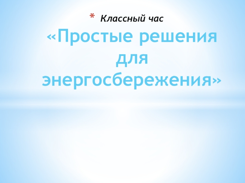 Слайд 1Классный час «Простые решения для энергосбережения»