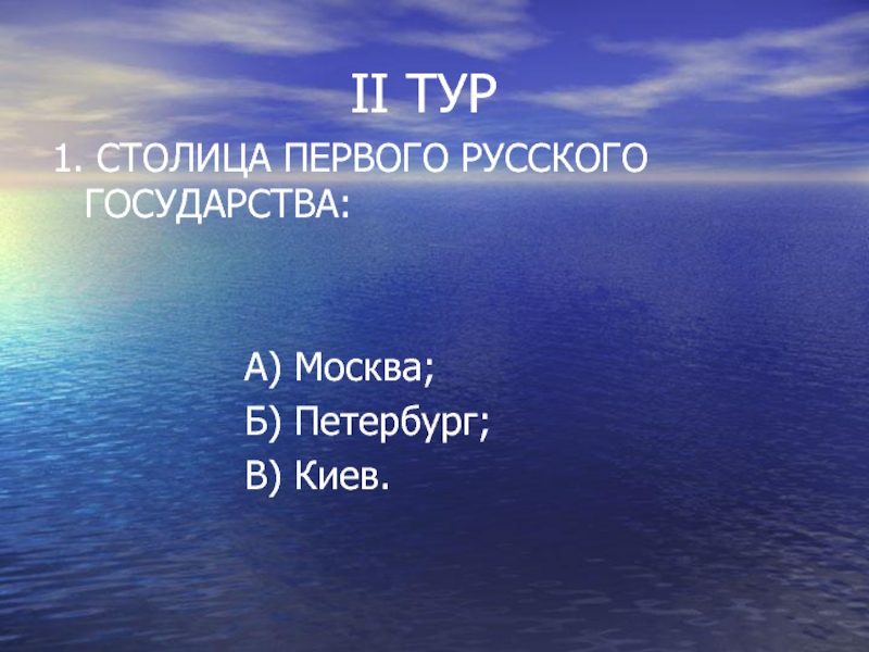 II ТУР1. СТОЛИЦА ПЕРВОГО РУССКОГО ГОСУДАРСТВА: